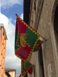 Our first stop was Sienna. This place is so rich in history that I cannot begin to go into it you can read about it HERE. The most interesting part about Sienna is the districts in which it is divided. There are 17 districts and they are very special to the people of the district. There are tiles notating which district you are located. This is tied to the Paleo horse race that is run twice a year in the summer. We just missed the last race and they were cleaning up after it in the Campo.